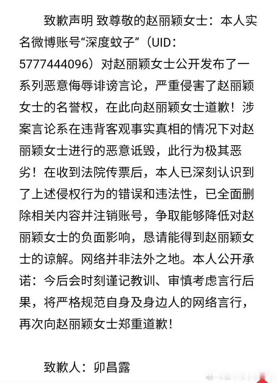 赵丽颖潶粉登报道歉了,支持赵丽颖依法维权!赵丽颖工作室告黑力度还是不错的法院刊登