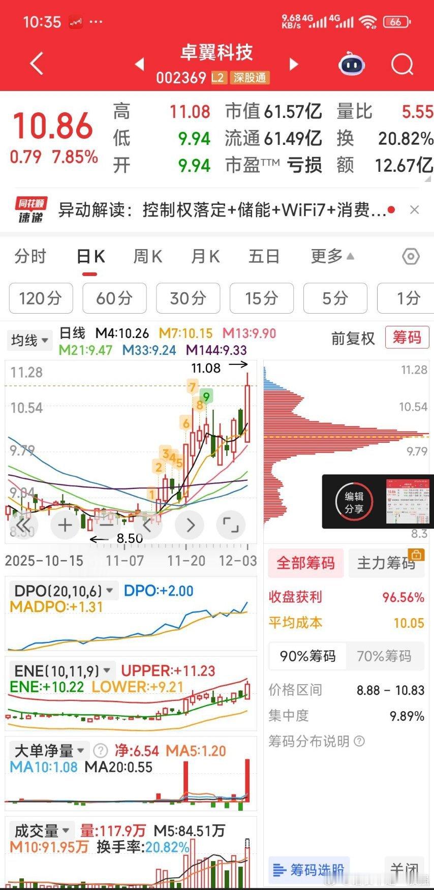 【建仓卓翼科技】刚放量发力,主力大单抢筹,10.76元建仓卓翼科技。