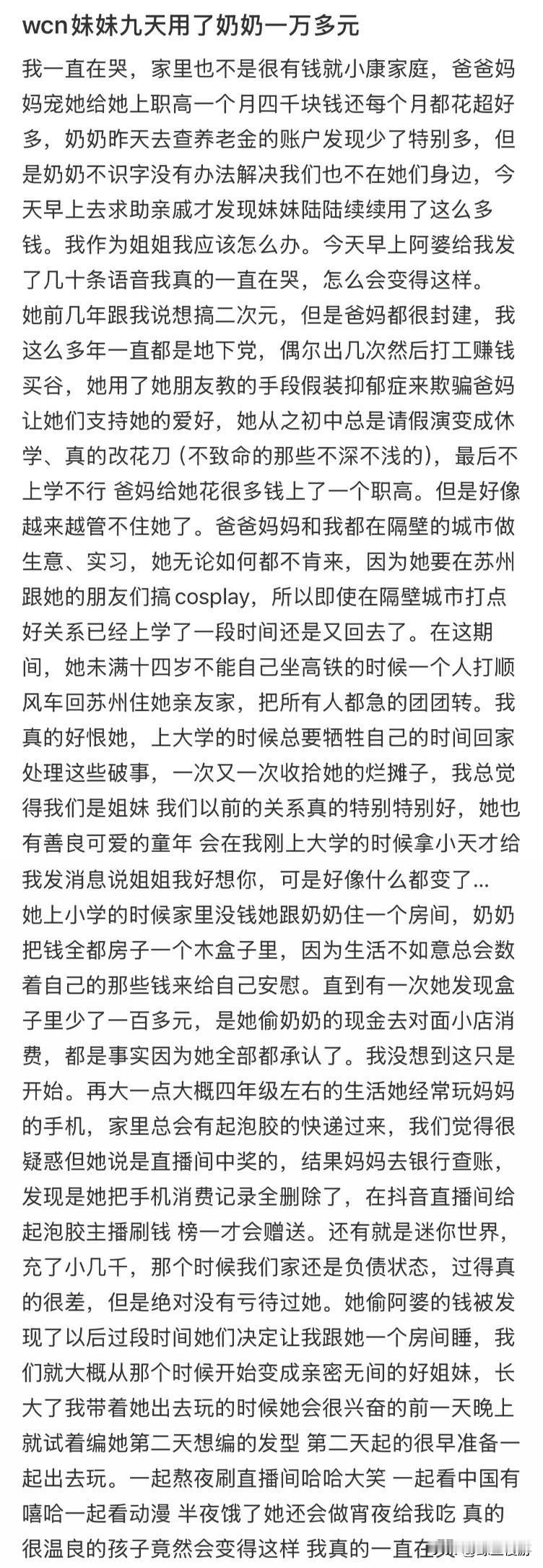 未成年妹妹九天用了奶奶一万多元😨