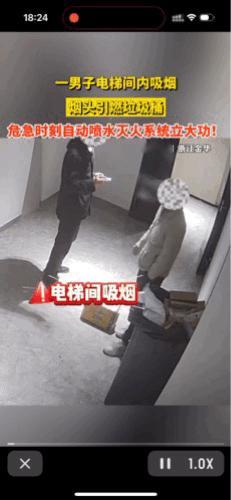 电梯间吸烟酿灾祸,浙江金华一栋办公楼电梯间突然起火! 11月27日晚间,两名男子站在楼梯间边聊天边吸烟,也不知聊些啥问题。聊到尽兴处,一男子把手中抽完的烟头很顺手地就丢进了一旁的垃圾桶里。然后两人大摇大摆地走出了电梯间。殊不知,他的这一行为差点酿成了大祸! 从视频中可以看到,垃圾桶里面已经堆满了一些纸箱和塑料制品。地面上也摆放了好多纸盒。 看样子,这两位男子应该是躲在这里吸烟吧。 男子把抽完的烟放到垃圾桶里的纸箱上面,用手稍微按了一下烟头,大概他是想把烟头按熄吧。但他没有检查转身就和朋友一起走了。 未熄灭的烟头慢慢地引燃了纸箱,几分钟后烟雾从垃圾桶里飘出来,很快就变成了明火,整个垃圾桶都燃烧起来了。 幸运的是,这栋大楼的消防设施正常运行着。浓烟弥漫起来时,烟感报警系统立即自动启动,报警铃声大响。 明火烧起来时触发了消防的喷淋装置,喷淋系统自动喷水,对面明火一阵猛洒,等工作人员赶到时,火灾已经扑灭。 事后工作人员倒查监控才发现,有两名男子在电梯间抽烟。从监控中看到晚上8点14分男子把烟头放入垃圾桶,8点27分垃圾桶冒烟,8点29分明火出现,8点32分时自动喷水灭火系统启动,1分钟后火势被完全扑灭。从冒烟到明火只有2分钟!从明火到完全熄灭只有4分钟! 摩天大楼及人员密集的场所,一旦发生火灾,如果没有立即灭火,就是灾难性的事件。而当天香港就发生了这样的灾难,已经造成了一百多人伤亡。 有网友评论说:应该把丢烟头的男子抓起来,就算是没有造成损失,也要给他教训,让他记一辈子。 有网友说:这栋楼的消防安全意识强,消防管理到位!消防设施和工作人员反应迅速! 大家说,对这位男子该如何处理呢? 取材网络,侵删