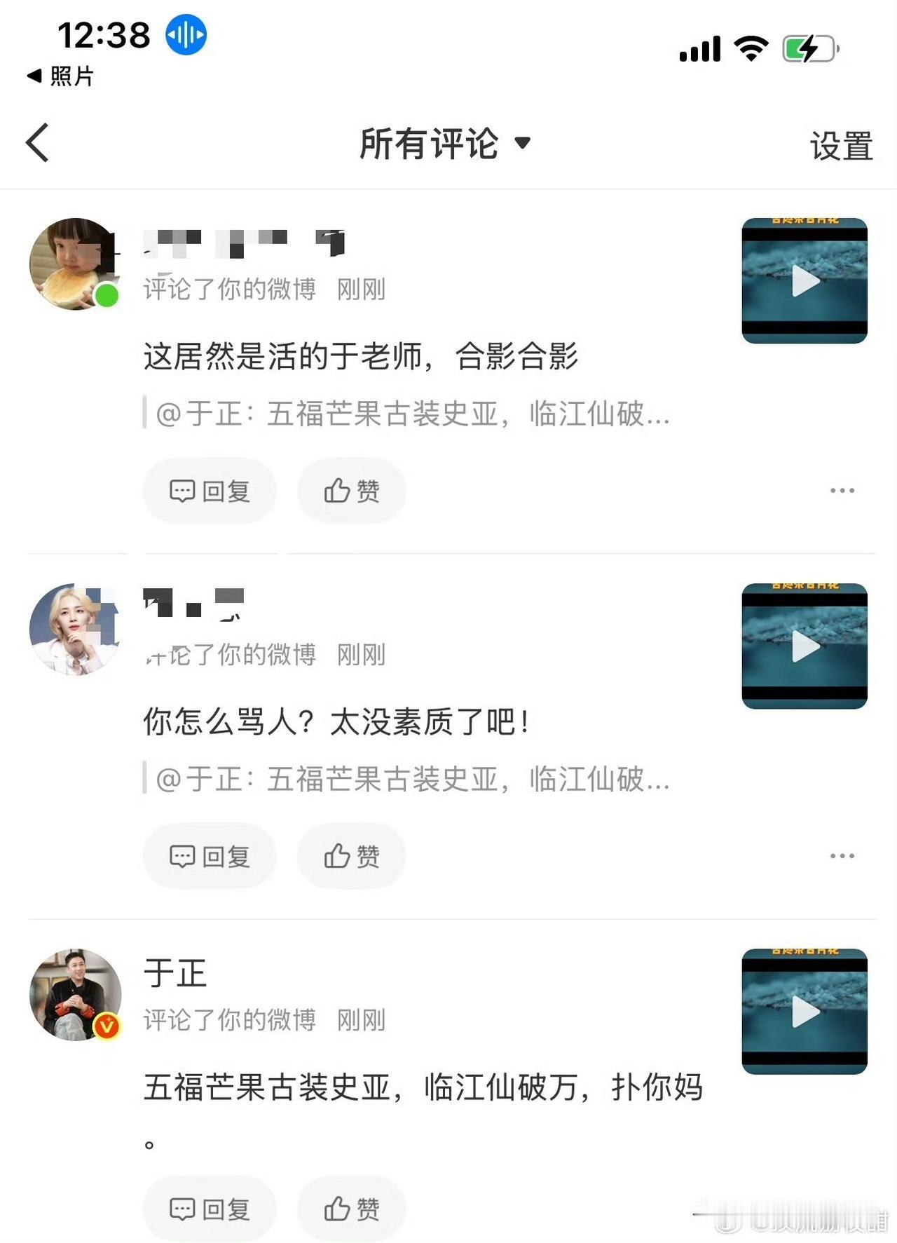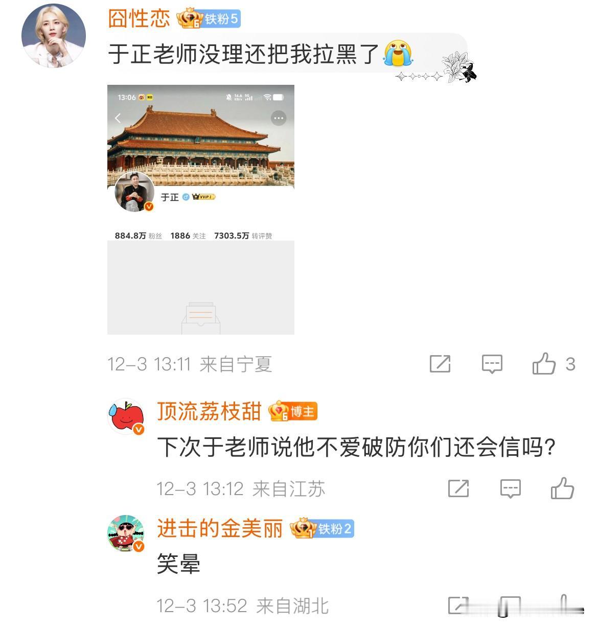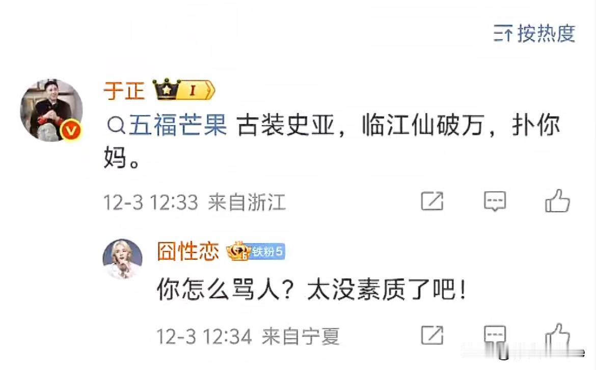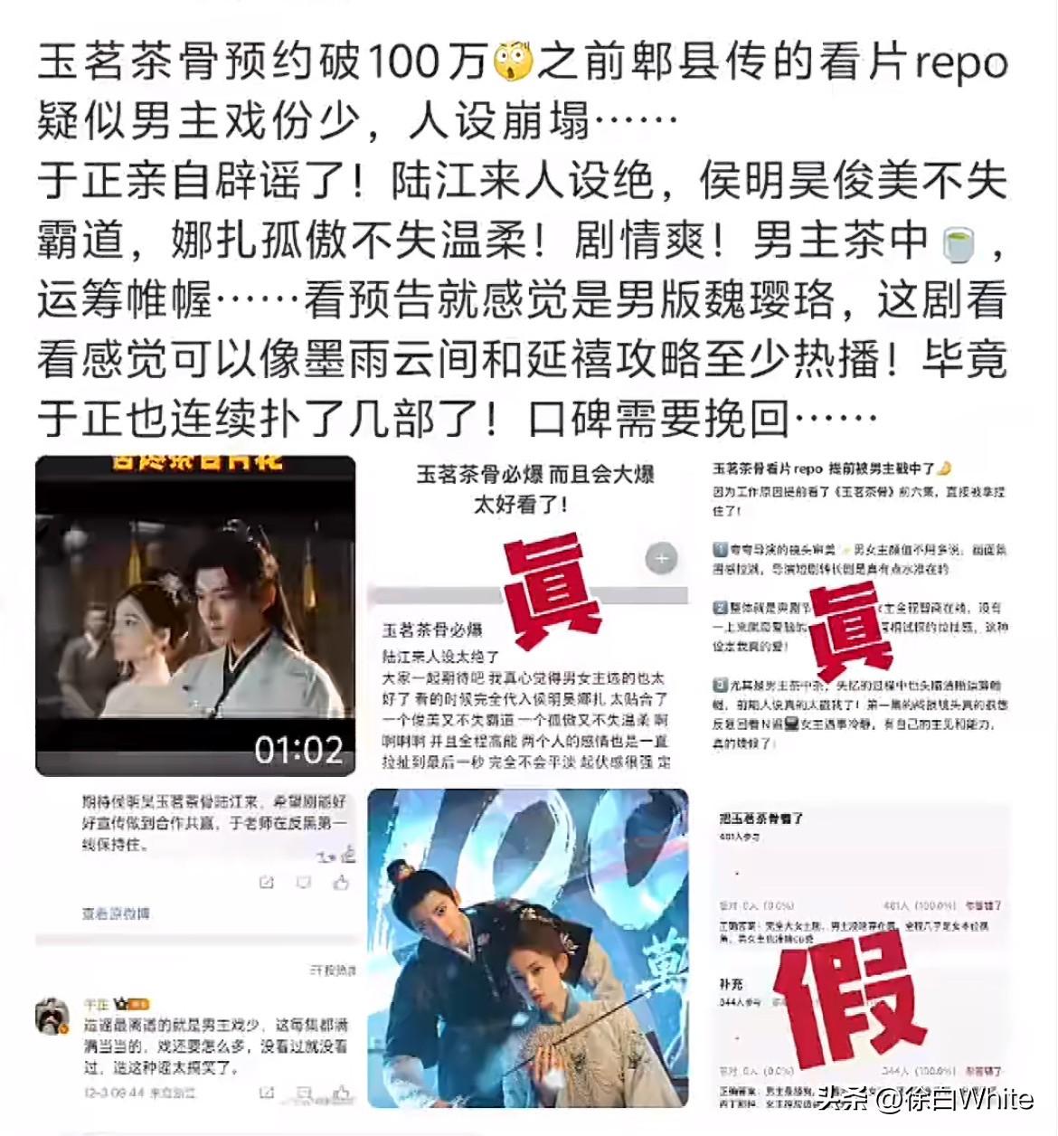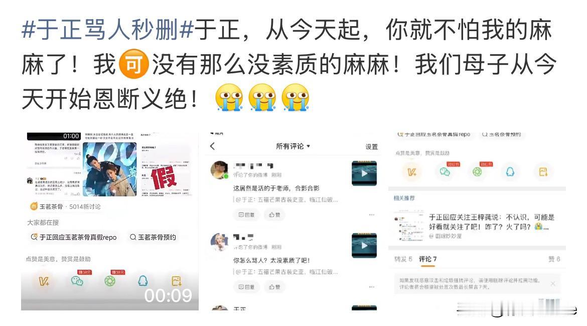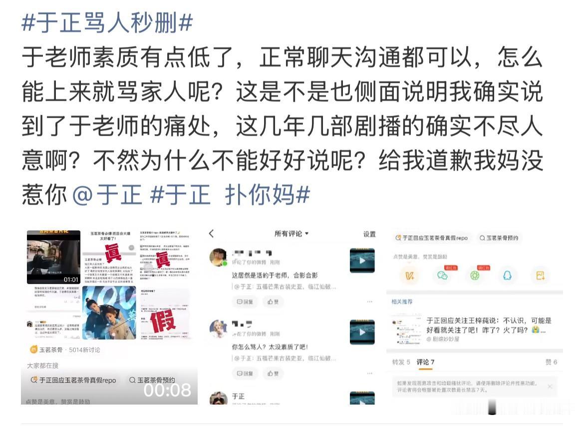 12月3日,谁又戳到于正的心窝子了? 昨天刚夸于正看到《玉骨茶茗》repo,肯定会重新剪辑,结果今天看到他因为repo大破防,还跟网友呛呛起来了,也是服了! 其实这事对于《玉骨茶茗》来说是好事,有问题在播出前改掉就好了,没必要说人家! 于正口碑本来就不行,靠幽默感获得些路人缘,现在连路人都不待见他了,哎~