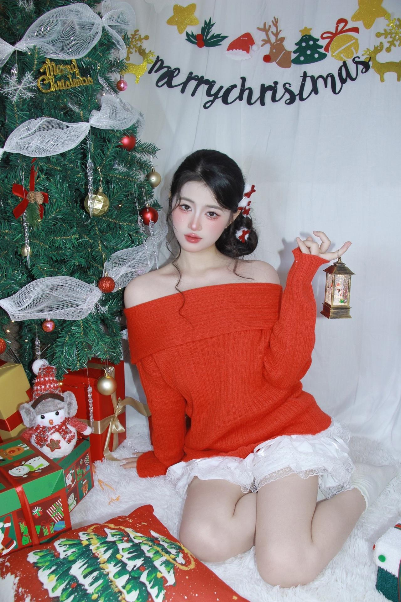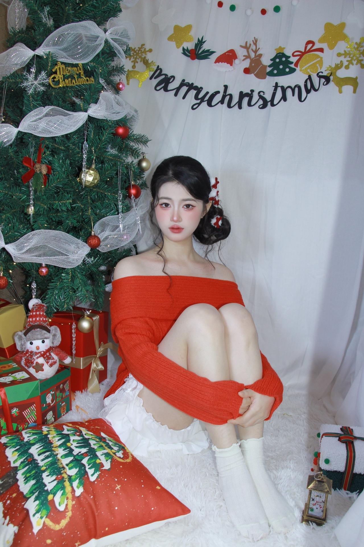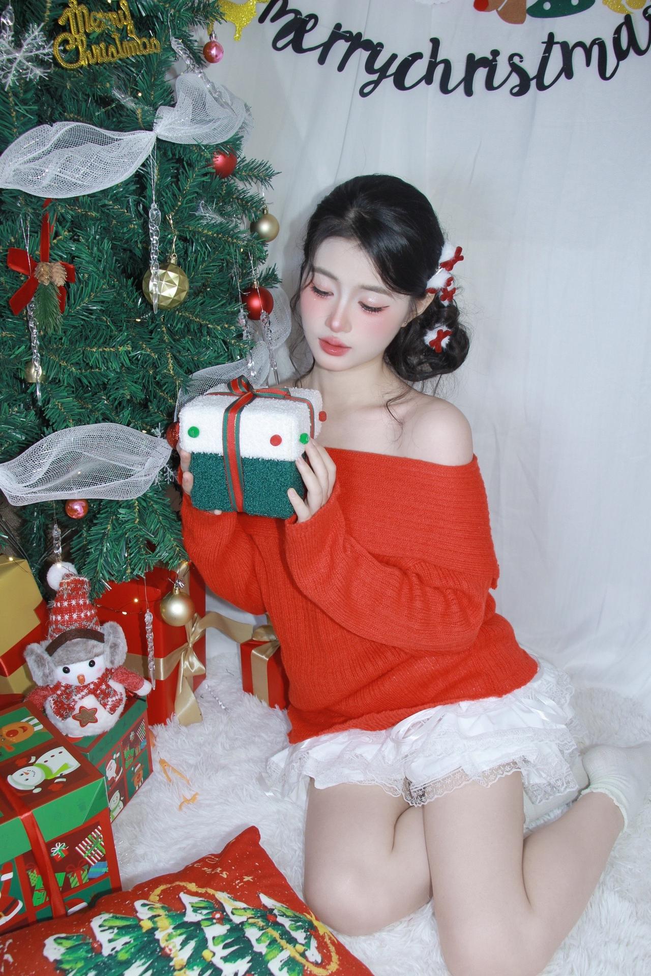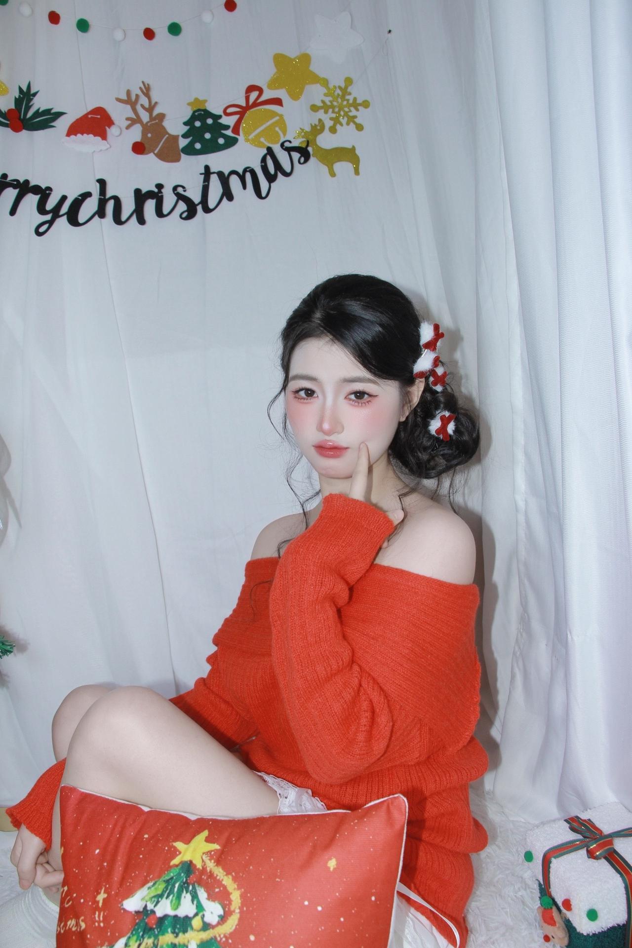 @耶耶缺 红色系 个人写真拍摄圣诞写真 生日拍照