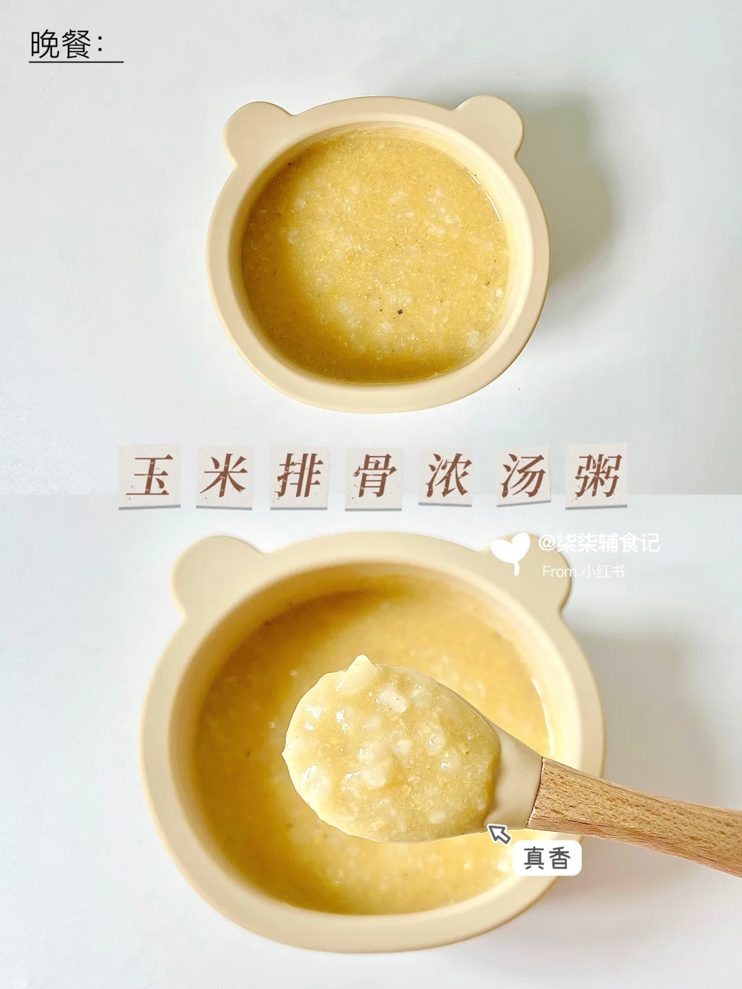 晚餐玉米排骨浓汤粥,简单快捷,营养丰富,柒柒吃还剩一点~饭后喝了50ml水。