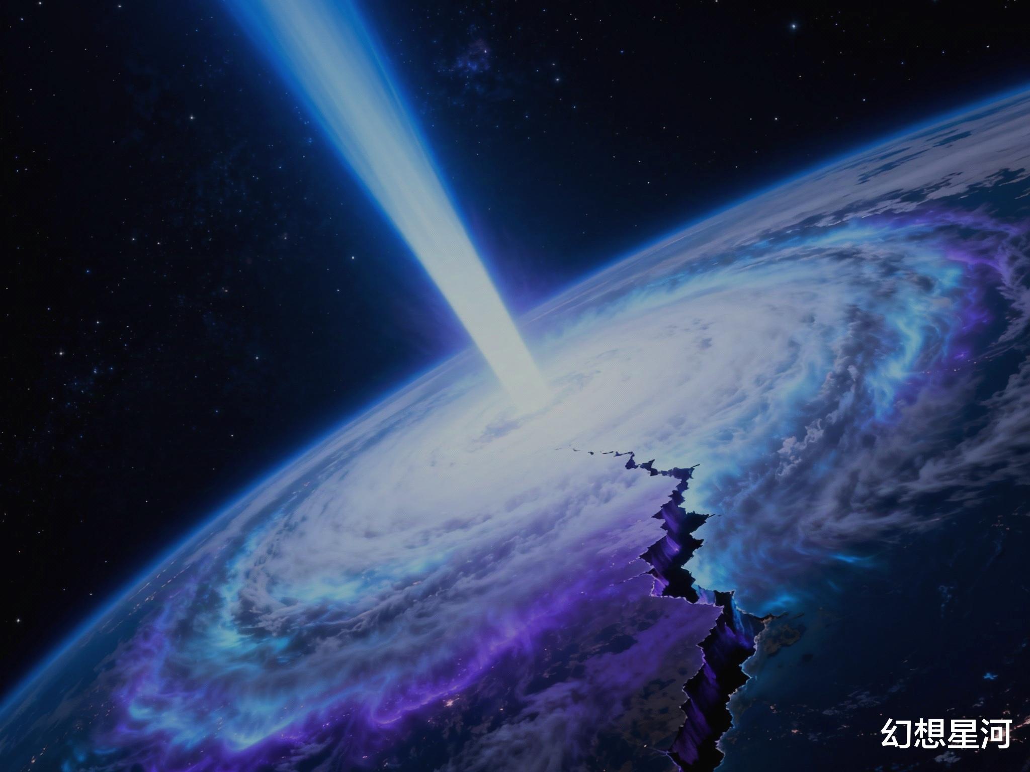 有一种说法是,奥陶纪大灭绝源于宇宙射线。一道蓝白色光柱从6000光年外疾驰而来,这对于4.4亿年前的地球毫无预兆。这束被称为伽马射线暴的能量流,短短十秒便撕开了地球的防护网,宇宙紫外线像失控的洪流倾泻而下,三分之一的臭氧层瞬间瓦解。剧毒的二氧化氮气溶胶迅速蔓延,大气中的氮气和氧气已被击裂。
