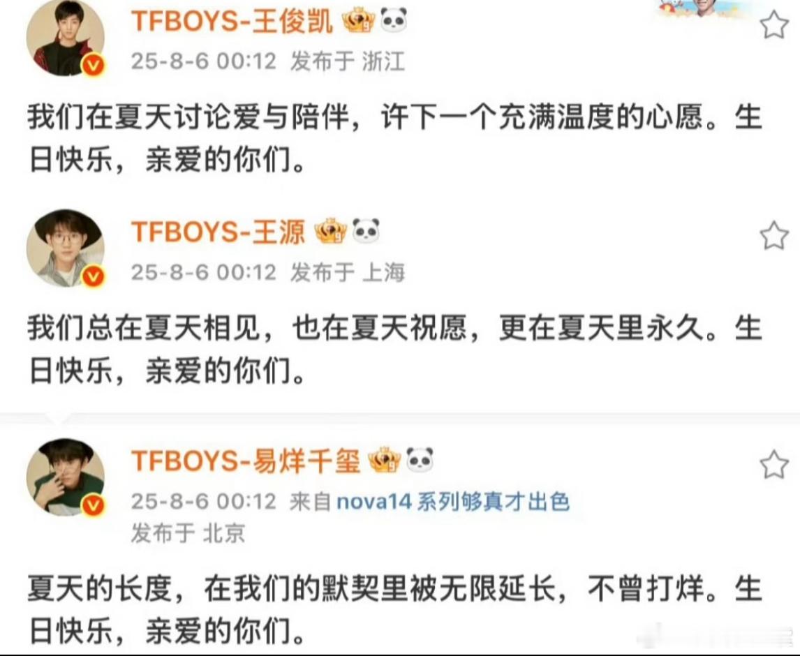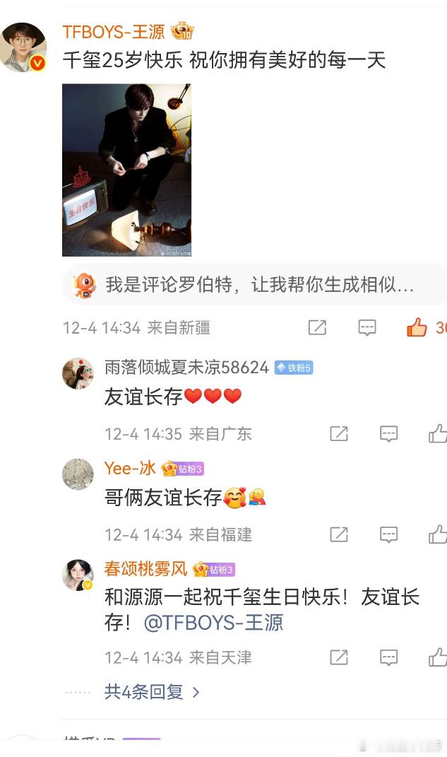 王源王俊凯为易烊千玺庆生了易烊千玺 王源王俊凯和易烊千玺的神仙情谊,真的是内娱养成系的天花板吧!新的一岁继续闪闪发光,三个人要一直好好的!是刻在时光里的默契与陪伴祝千玺生日快乐愿少年们永远并肩,越来越好|易烊千玺