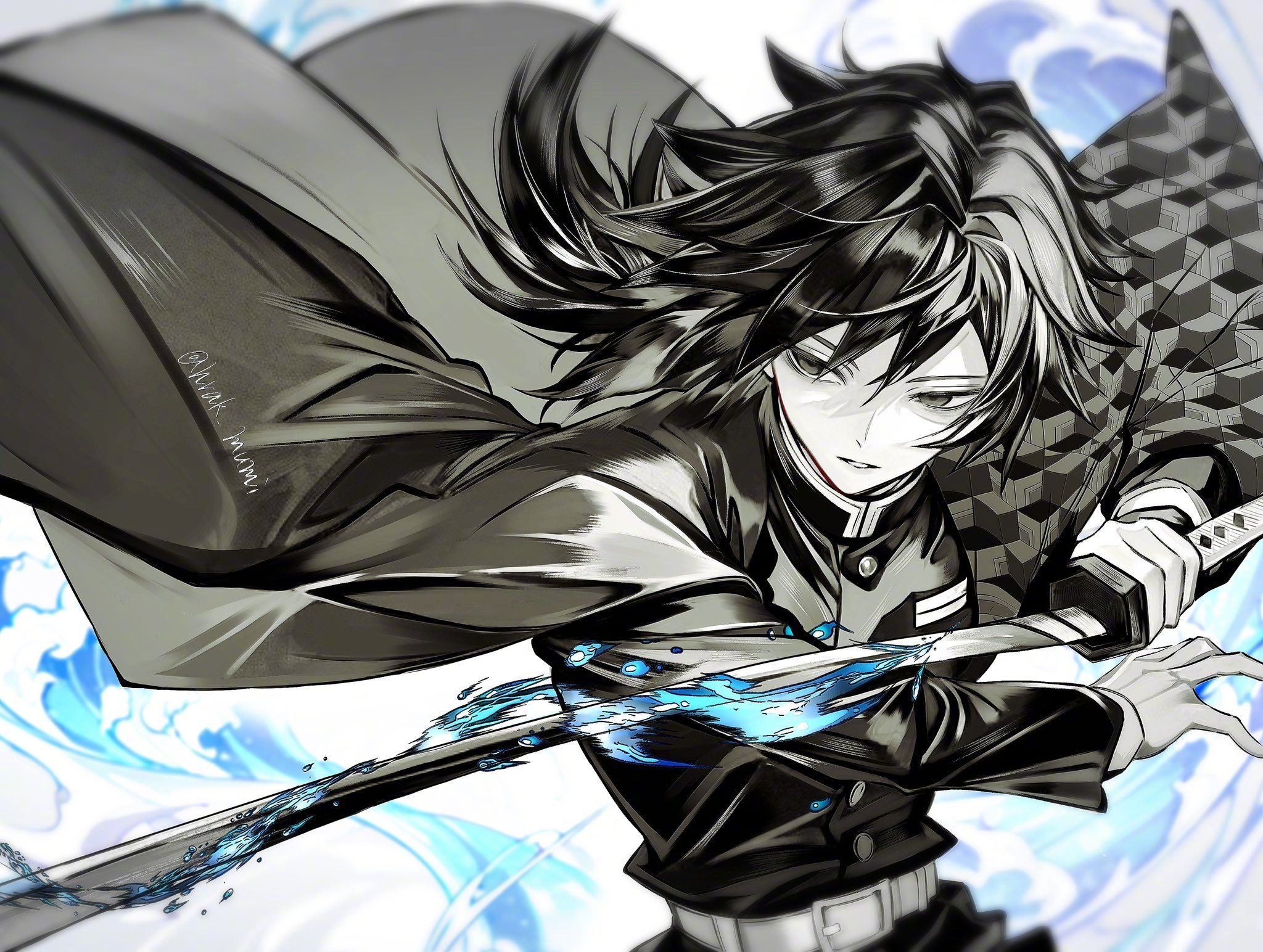 鬼灭之刃 黑白风义勇太帅了吧(画师Hrak_mumi)