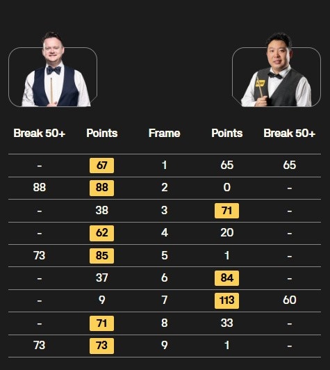 肖恩·墨菲打出三杆50+(88、73、73),张安达打出两杆50+(65、60),上半场过后墨菲3-1领先张安达,最终肖恩·墨菲6-3战胜张安达,晋级4强。