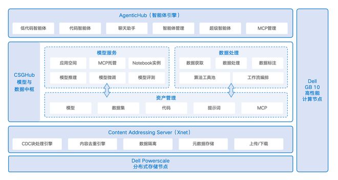 OpenCSGxDell参考架构,将“开发/预演/生产”三大环境统一在同一套算力与存储基座之上: