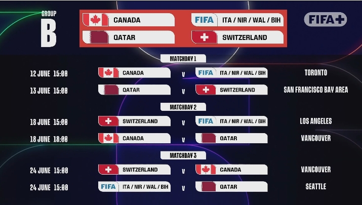 直播吧12月7日讯2026世界杯赛程公布,B组赛程确定。