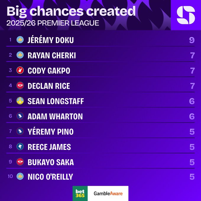 虎扑12月07日讯Squawka数据统计,多库本赛季英超中创造9次绝佳机会,在联赛中排名第一,且多库所创造的绝佳机会全部来自于运动战。