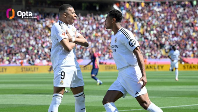 Opta数据统计,姆巴佩本场迎来了他代表皇马的第50场西甲比赛,在此前的49场比赛中,姆巴佩打进47球并送出7次助攻。