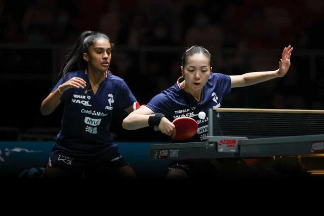 法国老将袁嘉楠(右)/帕瓦德从伊藤美诚/大藤沙月手中拼下1分