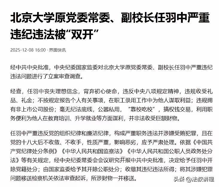 高校泡沫感藏不住了!46岁副校长塌方、26岁博导崛起,警惕高等教育去工业化隐患青年博导 任羽中系主动投案 曾是四川文科状元 一边是46岁身居北大副校长之位的学者意外塌方,一边是26岁青年学者逆袭成浙大博导,两极反差下,不少人直言咱们的高等教育总透着股“虚浮感”,更让人揪心的是,教育领域正悄然浮现类似美国“去工业化、空心化”的苗头,比学者年龄争议更该被重视。 就像大家吐槽的那样,工科专业本该扎根产业一线,手把手教技术、练实操,如今却成了“黑板上教修机器”,老师对着PPT讲原理,学生对着课本记步骤,毕业连基础设备都不会操作,空有理论文凭,毫无动手能力。 实验室建得光鲜亮丽,却很少对接工厂需求;学者忙着写论文、评职称,却没心思带学生扎根产业搞研发,久而久之,教育和产业彻底脱节,既培养不出能解决“卡脖子”难题的技术人才,也撑不起产业升级的需求,空心化隐患越来越明显。 结果就是,法学、会计这些曾经的热门专业毕业生扎堆,却没对应的岗位承接,企业急需的技术型人才又招不到,甚至有企业吐槽:现在的工科研究生,实操能力还不如几十年前的本科生,根本没法直接上手干活。 美国当年因去工业化、产业空心化陷入发展困境,早已敲响警钟。咱们的高等教育,不该重蹈覆辙。与其盯着学者的年龄争论不休,不如多聚焦核心问题:高校培养的人才,能不能适配产业需求?工科教育能不能真正走出象牙塔、走进工厂车间?科研成果能不能落地转化、解决实际难题? 学术界困境 浙大26岁博导有多牛 26岁成为浙大博导有多难 教育 浙大90后博导毕业于石家庄一中 你觉得该怎么破解高等教育“理论脱离实践”的问题?评论区聊聊~