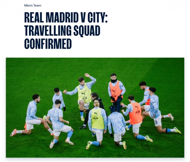 直播吧12月9日讯北京时间本周四12月11日凌晨4点,欧冠联赛阶段第6轮,曼城将客战皇马,曼城公布了此役21人大名单。