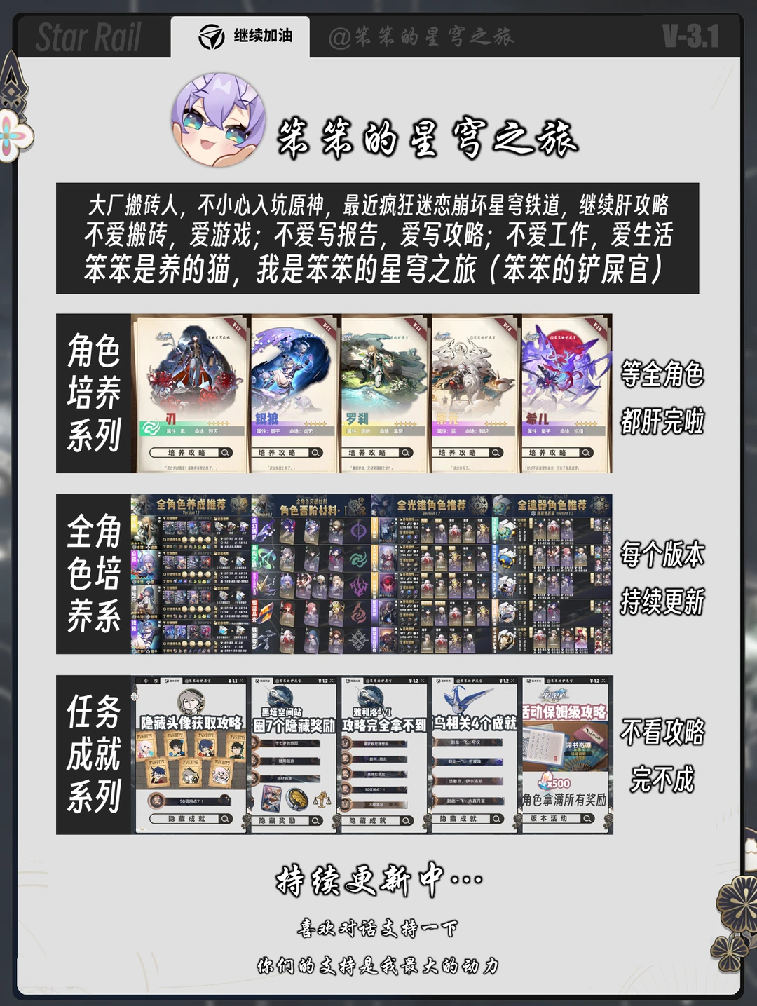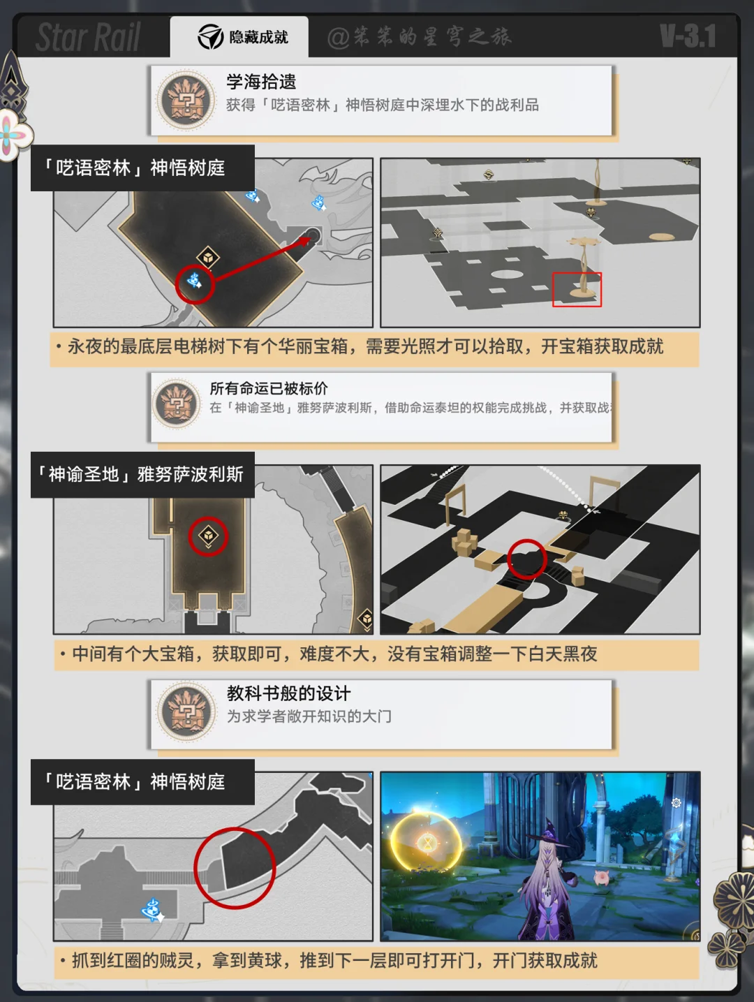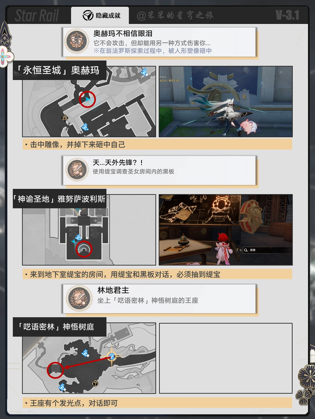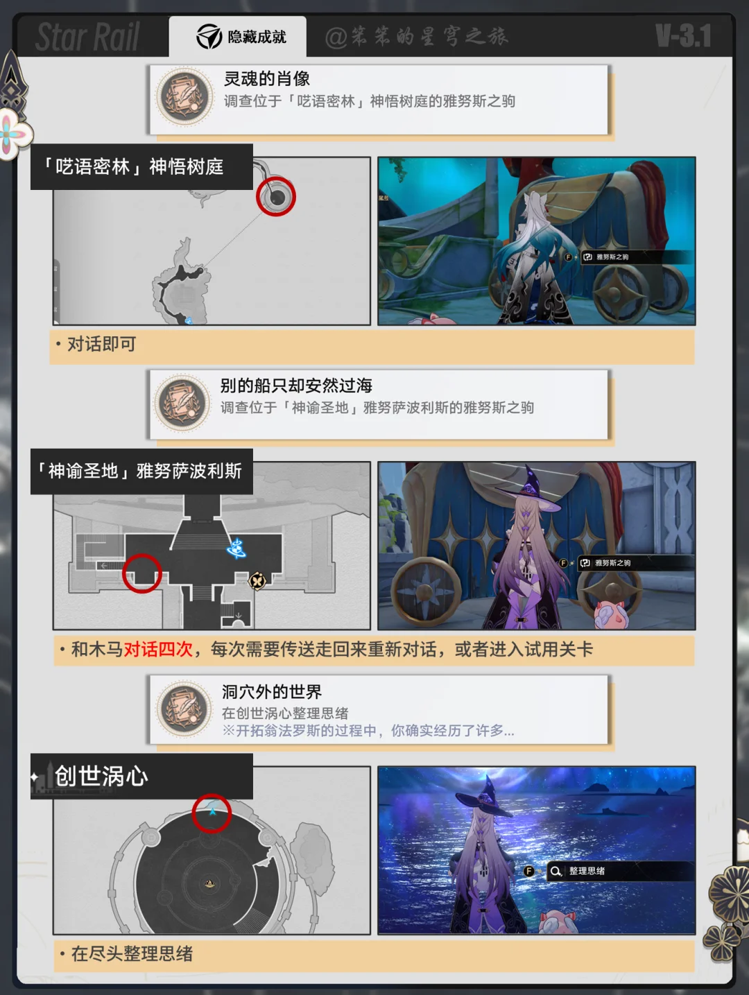 🐱大家好,我是笨笨的铲屎官 今天给大家带来的3.1隐藏成就 包含了大部分成就 剩余未标注的成就,要不就是直接主线必拿 要不就是比较复杂,一张图放不下的 希望对你有用哦