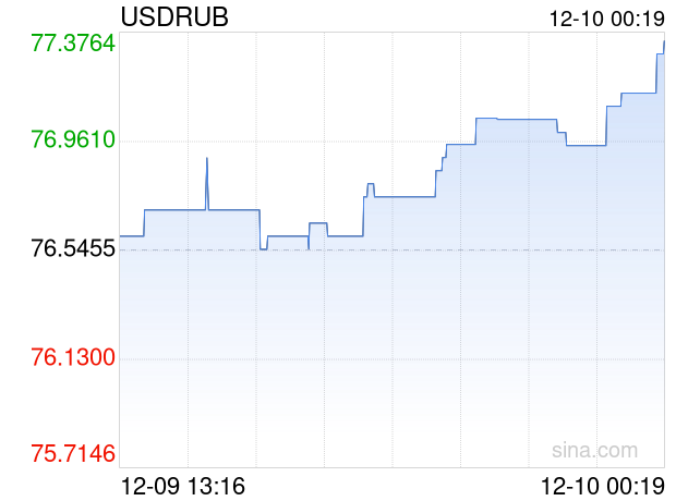 新浪外汇消息2025年12月10日,截至00时19分,外汇市场上美元兑俄罗斯卢布汇率突破1美元兑换77.3455俄罗斯卢布。涨幅为1.0451%