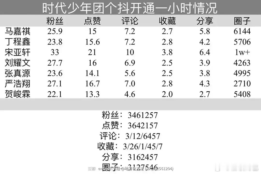 时团0点开抖到现在的数据(10小时版)1马嘉祺 2丁程鑫 3宋亚轩 4刘耀文 5张真源 6严浩翔 7贺峻霖