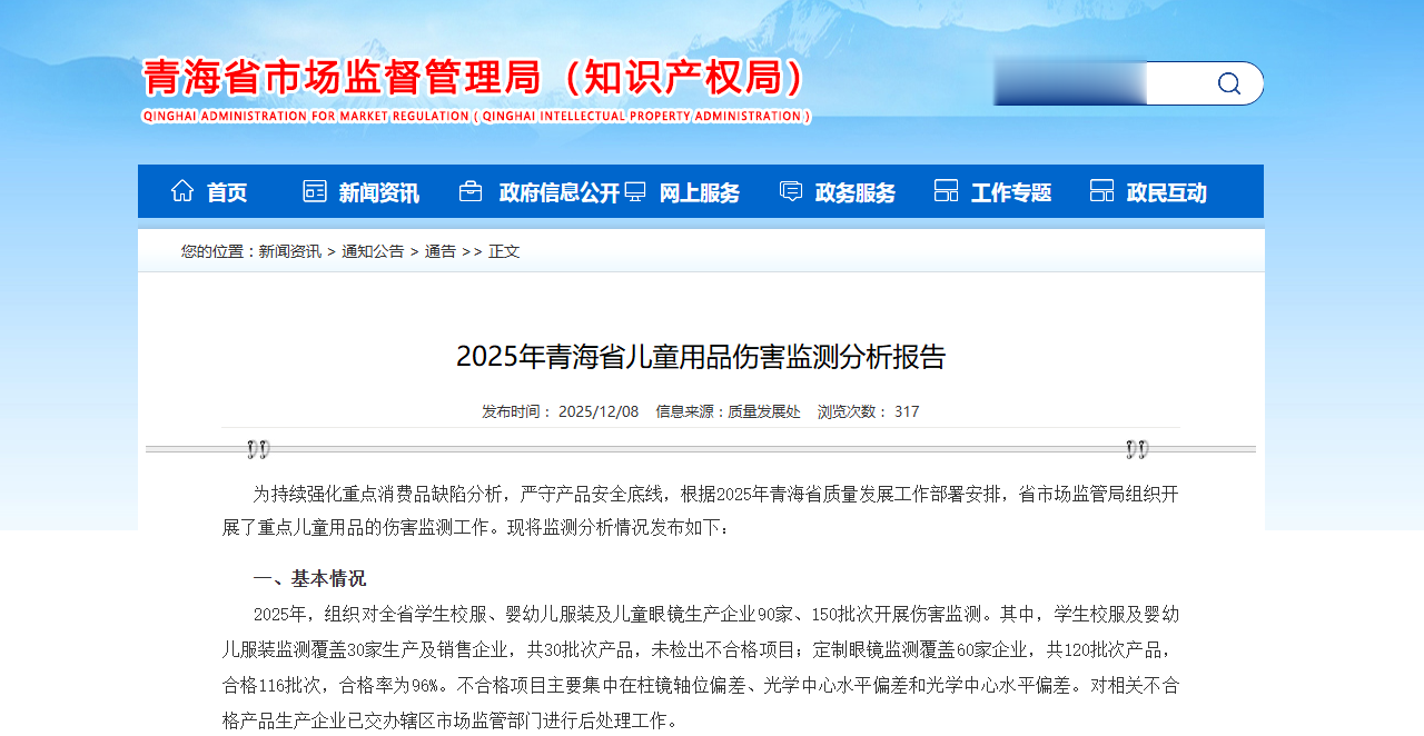 为持续强化重点消费品缺陷分析,严守产品安全底线,根据2025年青海省质量发展工作部署安排,省市场监管局组织开展了重点儿童用品的伤害监测工作。现将监测分析情况发布如下: