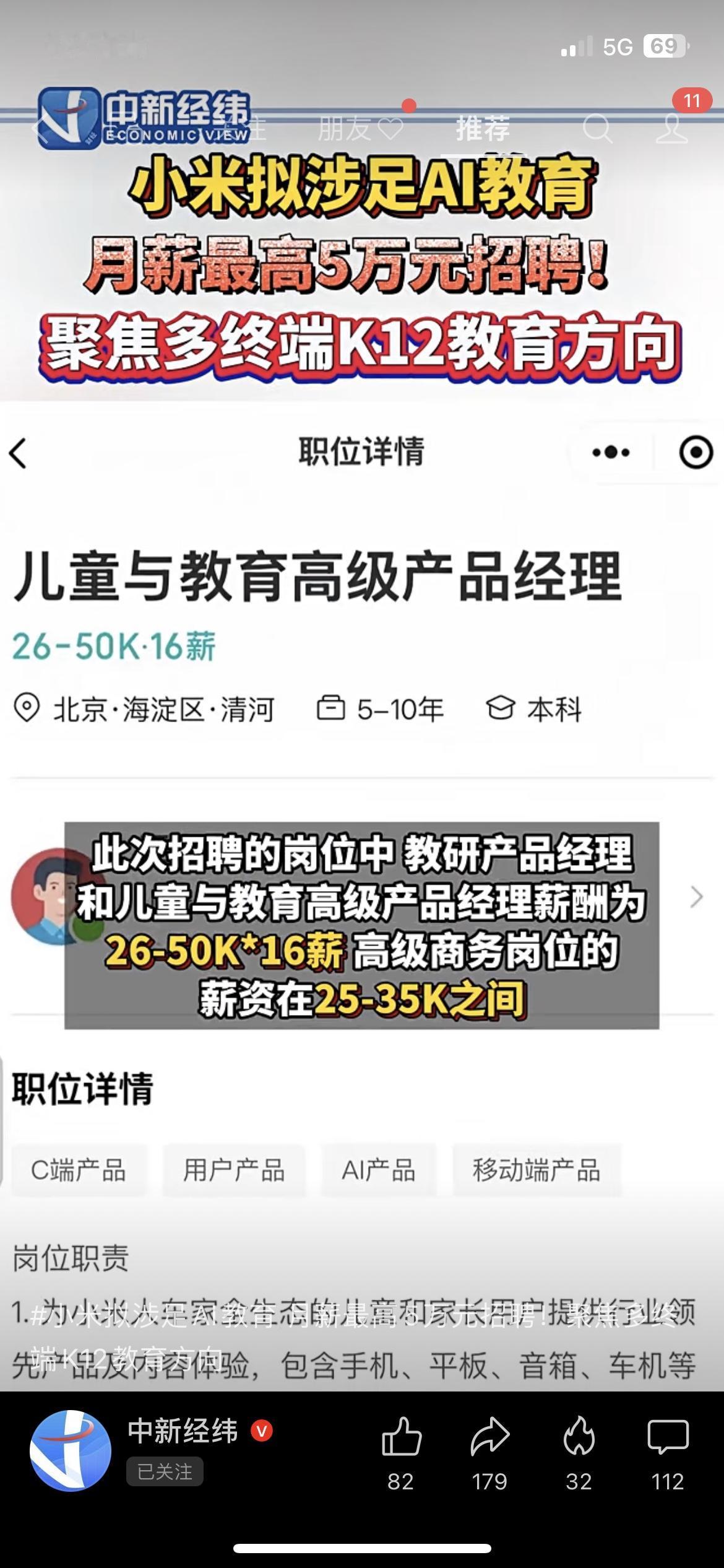 小米又搞新动作了!这次瞄准AI教育,直接开5万月薪招产品经理,重点做K12方向,早几年还出过小爱老师试水。现在家长对孩子AI学习工具需求特高,你们觉得小米做这个能靠谱不?家里有娃的会不会愿意试?来唠唠~小米发展前景