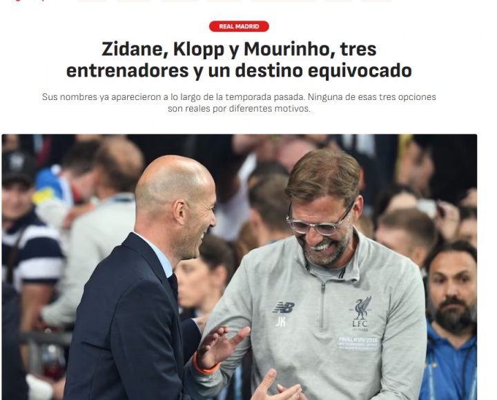 直播吧12月10日讯据西媒《阿斯报》报道,虽然近期有传闻皇马希望换帅,但克洛普、齐达内以及穆里尼奥均不是球队的目标。
