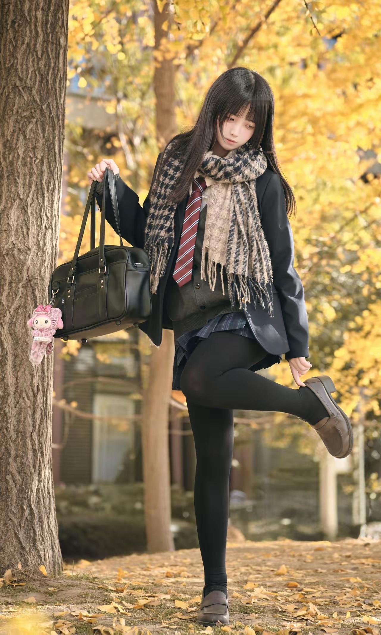 秋末冬初的穿搭风,美女腿上有肉,总好过鸡腿筷子腿,健康的身体最重要。标准的青春学