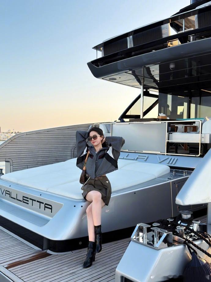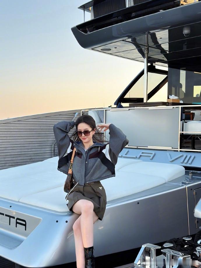 刘亦菲随便一拍就出片了刘亦菲自拍直出 刘亦菲船舷倚靠随拍!吊带配衬衫造型简约,自然状态下氛围感拉满。