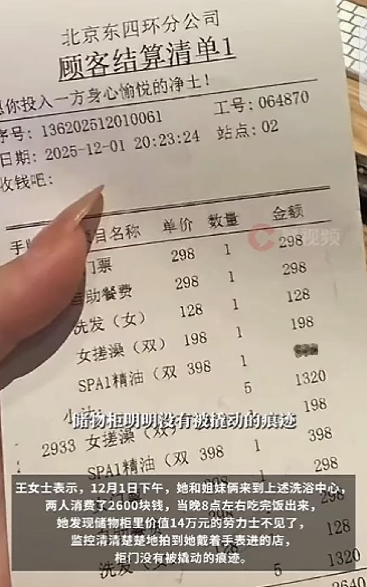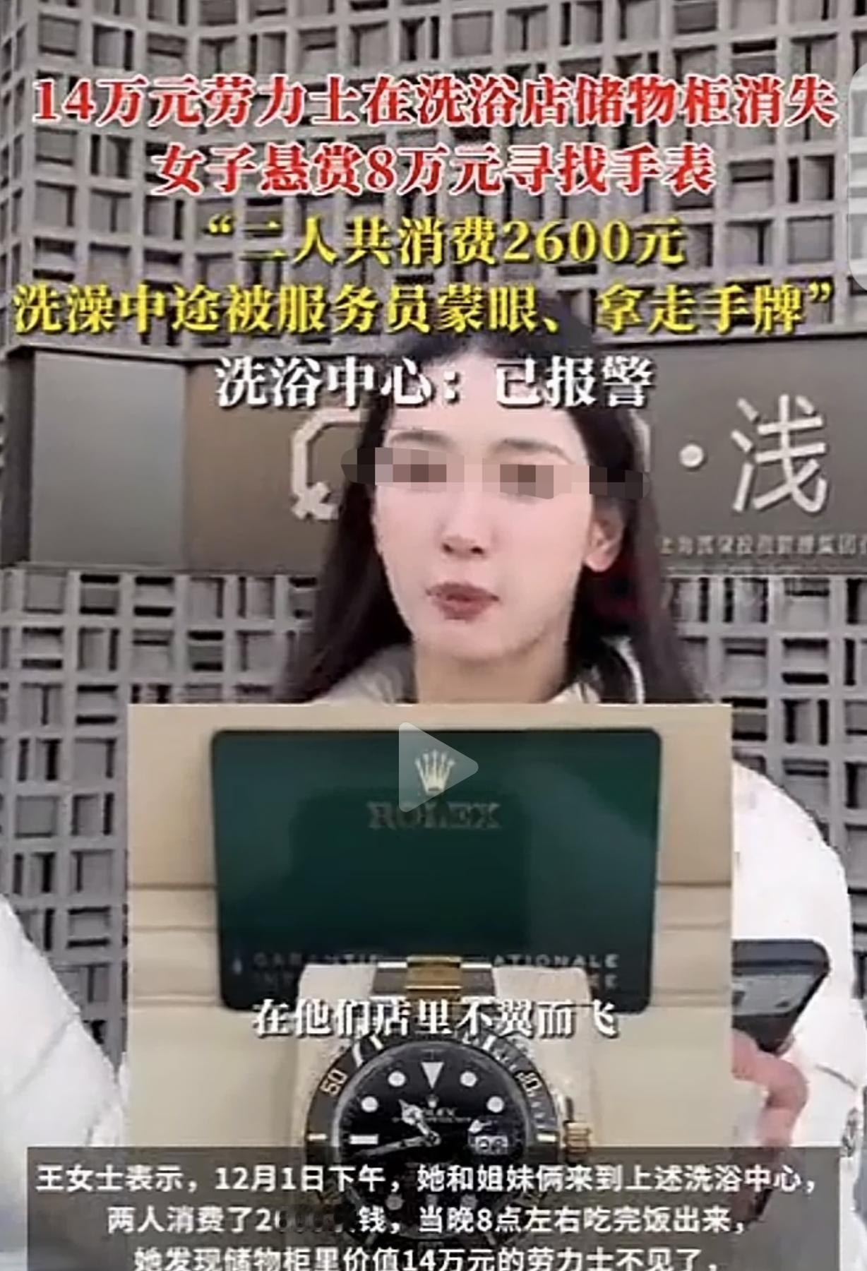 北京,一女子戴14万的劳力士手表,花2600元,和朋友去洗浴店洗澡,她洗完竟发现储物柜里的手表不见了,而柜子没撬动痕迹,女子心里咯噔一下,她怀疑自己搓澡时,服务员蒙住了她的眼睛,然后悄悄拿走了她的手牌,把劳力士偷走了,女子悬赏80000元想找回自己的手表。没想到洗浴店竟然先报了警。 杨女士攥着储物柜钥匙站在更衣室中央,热气模糊的镜子里映出她发白的脸——这是她来北京旅游的最后一天,和闺蜜特意选了这家人均消费过千的洗浴中心,想洗掉连日暴走的疲惫。 搓澡师傅递来热毛巾时,顺手接过了她的手牌:“姐您放松,手牌我先帮您收着。”当时蒸汽氤氲,眼睛被毛巾蒙住的瞬间,她只听见金属牌碰撞的轻响。 等她裹着浴巾回来,旋转储物柜的密码盘纹丝不动,打开后——原本垫在角落的丝绒表盒空了,表盘反射的冷光仿佛还在眼前晃。 可没有撬动痕迹的柜子,手表是怎么凭空消失的? 洗浴店经理带着保安赶来时,杨女士的声音都在抖:“我眼睁睁看着手牌被拿走,现在表没了,你们得负责!”对方却掏出手机:“我们已经报警了,警察马上到。” 更让她窝火的是,警方调取监控时发现,更衣室那片刚好是“视觉盲区”,只有清洁阿姨推着车经过的模糊影子。 悬赏公告发出去那天,评论区炸了锅。有人晒出自己在浴场丢过3000块现金的经历,“监控坏了,经理说‘可能是您记错了’,最后送了张50元优惠券了事”;也有人抛出灵魂拷问:“发票能证明你买过表,但怎么证明进浴场时戴的就是这块?” 法律博主翻出《刑法》第264条,14万已经够上“数额巨大”,真要查实盗窃,三年刑期是底线;但反过来,要是最后发现是杨女士自己忘在汗蒸房,那8万悬赏公告可能引来一堆假线索——毕竟《民法典》规定,悬赏人不能反悔。 懂行的老顾客都知道,这种场所该有“双人登记寄存本”,可事发后更衣室才贴出“贵重物品请交前台”的打印纸,像临时从网上down的模板。 “连我家楼下网吧都要求电脑包寄存,”有网友晒出工作照,“我们吧台有个保险柜,顾客签字时摄像头还得拍个特写。” 好在每块劳力士都有独一无二的“身份证”,报警当天品牌就把编码录入了全球盗抢系统——只要有人敢拿去专柜换电池,屏幕上就会跳出红色警报,数据直接同步给北京警方。 这个“隐形防线”让杨女士松了口气,她每天刷三次品牌官网,看着那个闪烁的“追踪中”图标,像盯着手术室外的指示灯。 这事儿戳破了个尴尬现实——消费者总默认“贵的地方就安全”,可商家未必愿意为小概率事件投入成本,监控死角、手牌混用,这些漏洞早成了行业潜规则。 现在更衣室多了个穿西装的保安来回晃,手里捏着对讲机,可杨女士知道,真正的安全该像她手腕上曾有的重量,看不见却实实在在。 她把悬赏视频置顶了,评论区还在吵,有人说“编码追踪靠谱,肯定能找回来”,也有人劝她“做好心理准备,这种案子破获率不到三成”。 柜子上的水渍早干了,可杨女士总觉得那天的雾气还没散,蒙住眼睛的,到底是毛巾,还是没说破的规则? 警方的电话还没打来,她摸着空荡荡的手腕,突然想起买表时柜姐说的话:“这表防水,但防不住人心。”