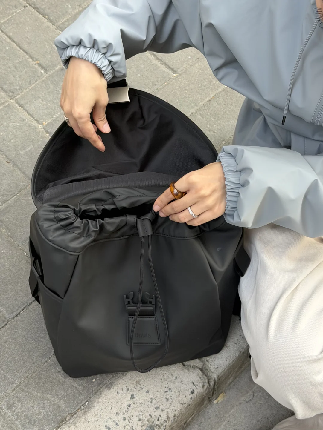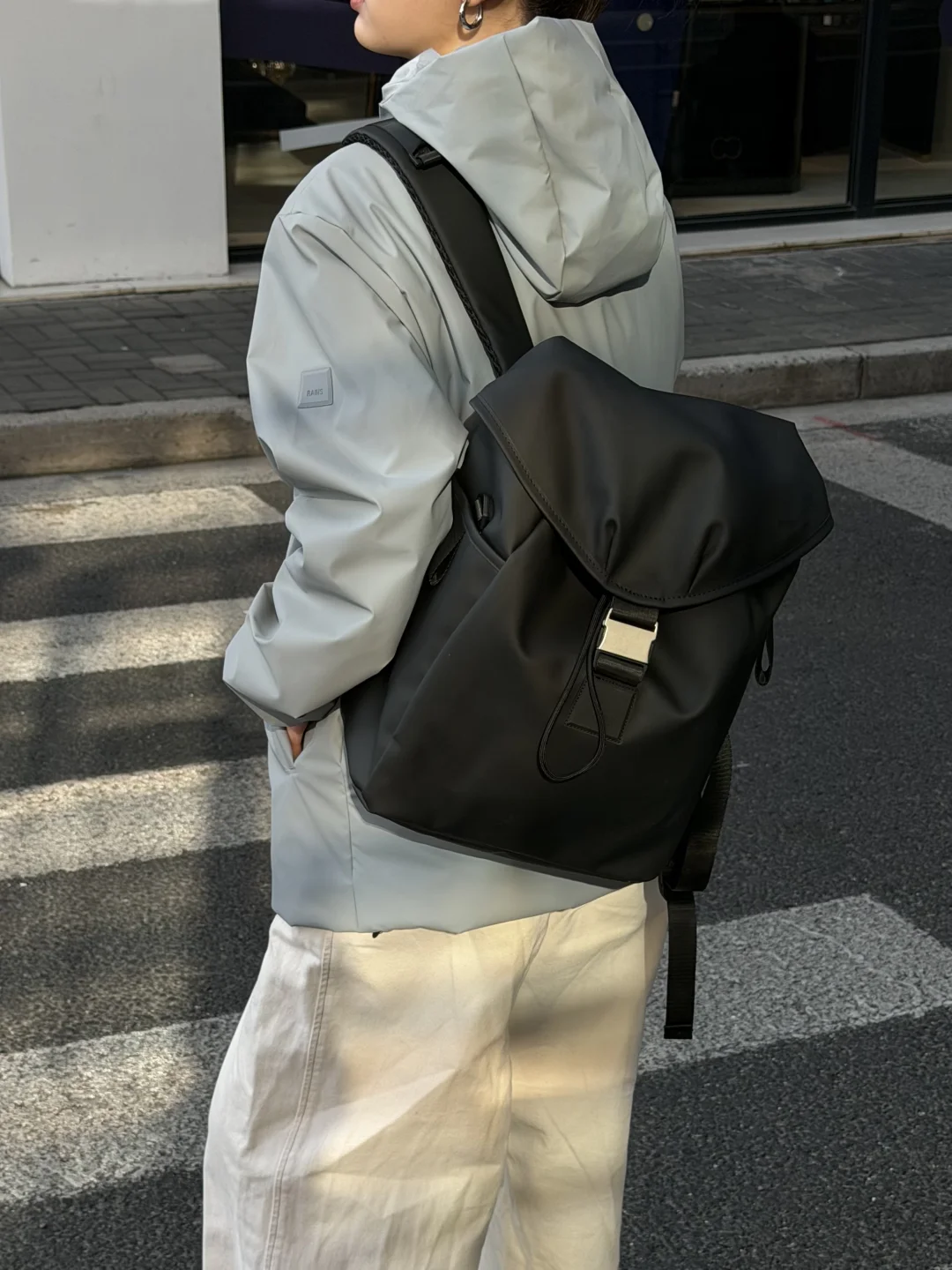 抽绳封口悄悄收拢琐碎,翻盖与搭扣多添一分稳妥
