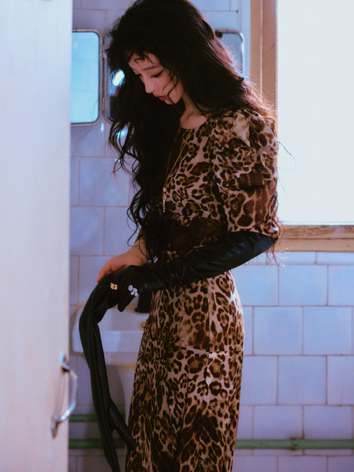 棕系穿搭的室内雅韵。深V格纹网纱上衣搭配皮质短裙,既保留了格纹的优雅复古,又
