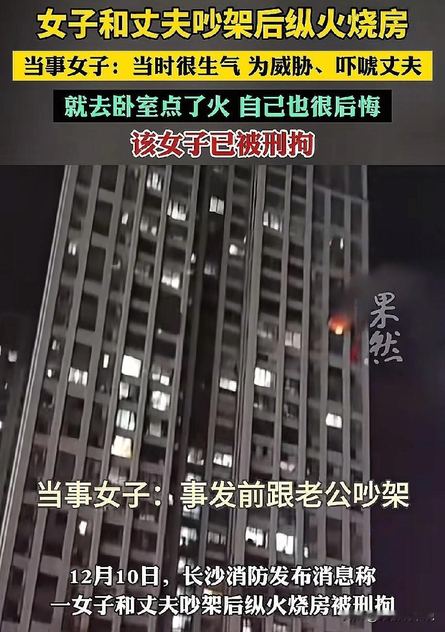 跟老公吵架后放火烧家的女子,现在已经肠子都悔青了!看了她家着火的照片才发现,原来她家住在21层,在她家楼上还有11层楼的居民,都知道火往上烧,看到着火后的居民应该是吓坏了,两口子吵架的多了去了,严重点的也就是打打砸砸家里的物品,直接放火烧家的还真是头一回见,多亏有人及时发现通知了物业和消防人员扑灭了火灾,没让火势继续扩大,也让他人躲过了一场无妄之灾!目前女子已经被刑拘,希望她能在里面好好反思一下,自己差点酿成多大的祸!