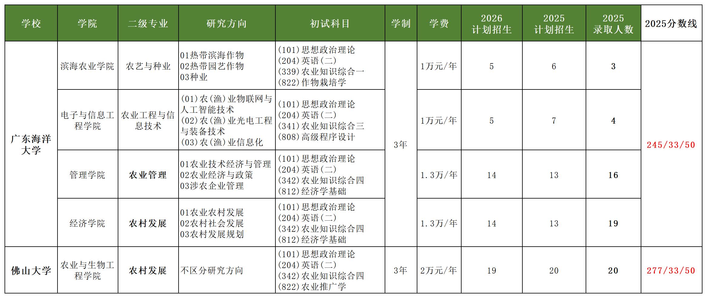 【非全】容易上岸的专业-农业硕士。农业硕士在研究生专业中,属于上岸难度低的专业之一,在招生方向里,农业管理和农村发展接受跨考,是报考热门方向,有些院校的录取分数需要接近300分及以上;广东招收非全日制农业硕士的院校及方向信息看表格!