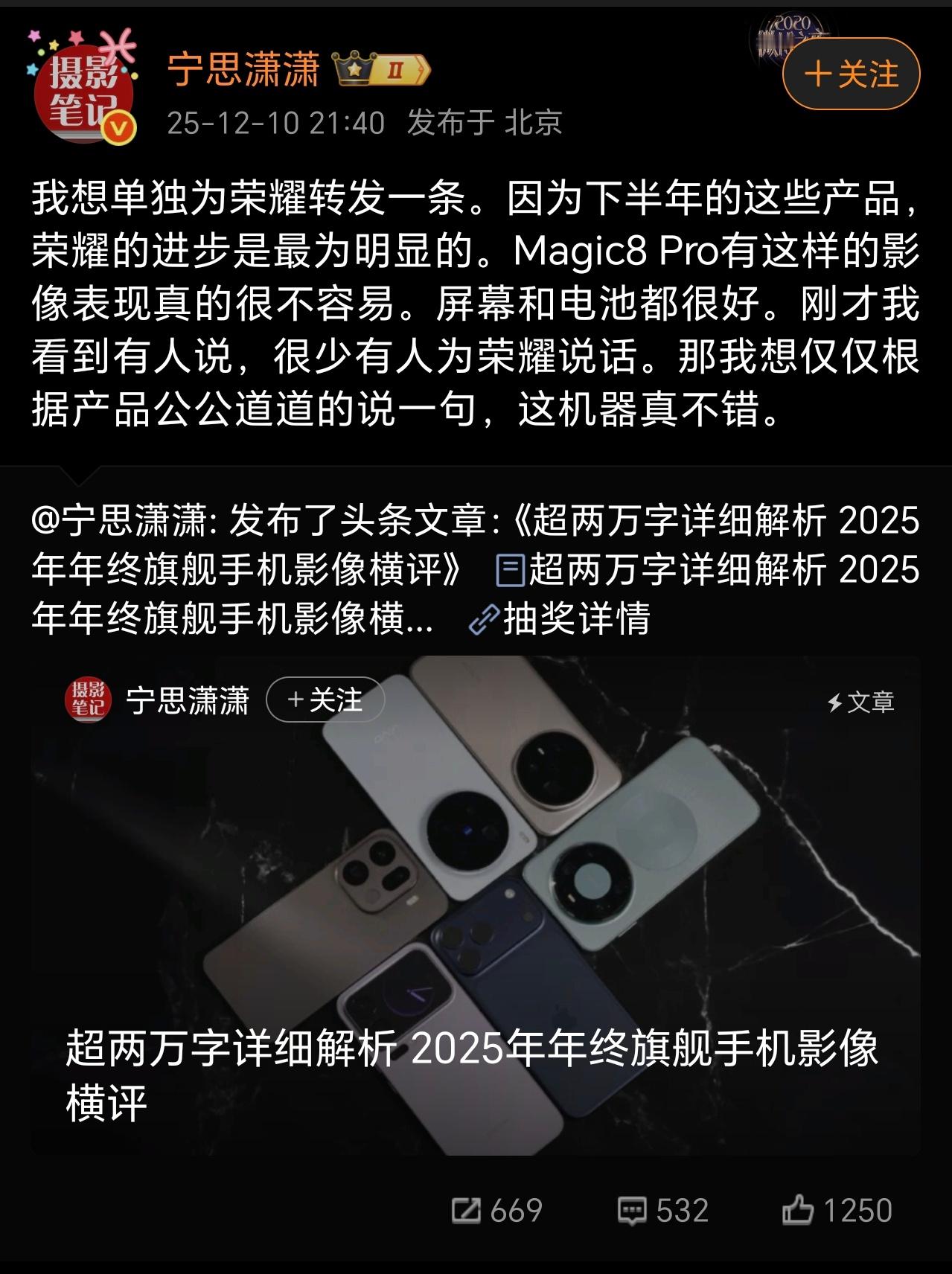 我那还没捂热乎的荣耀Magic8 Pro,也将成为我家媳妇大人的痛机了,手机壳已经换了。而“霸占”8 Pro的理由很简单,就是8 Pro拍照真的提升太多了,肉眼可见的强大,摄影大牛宁思潇潇也通过横评给出了同样的结论。可惜的是,荣耀长期被黑子带节奏说影像不行,盲评没输过,带水印没赢过,不明所以的大众也被带偏了。建议大家多去门店上手体验,荣耀Magic8系列还是很不错的。不说了,导数据去了……田曦薇手里的痛机是粉丝手搓的