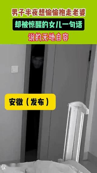 孩子爸爸半夜趁着女儿睡熟想抱走老婆过二人世界? 结果却被惊醒的女儿及时发现! 爸
