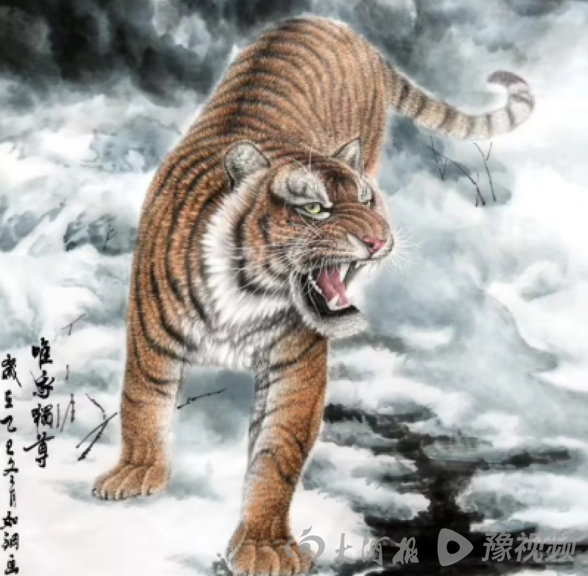 其代表作《百虎图》气象宏大,极具收藏价值,得到了观众的一致好评。他的书法作品同样不拘一格,字形舒展大气,笔力遒劲流畅,富有张力与笔意,与画作相得益彰。