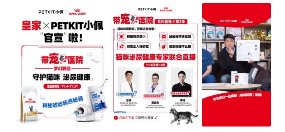 与此同时,皇家携手宠物智能用品品牌PETKIT小佩,聚焦宠物泌尿健康痛点,首次打造品牌守护猫咪泌尿健康联合社群。双方整合彼此在精准营养与智能科技领域的优势,深入泌尿健康问题具体场景,共同打造了“从疾病预防到日常养护”的一站式、场景化教育内容体系。双方以专场直播、社群问诊等形式,重塑了居家环境下宠物泌尿道健康的管理新范式,将泌尿健康管理前置并融入日常。本次合作共吸引上千名宠主参与社群互动及直播。