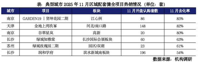 天津金地上湾玖峯项目,凭借市区中环内新产品+重点学区红盘实现热销,项目为天津中环线内最后的连片开发板块,天津小外12年制学校吸引学区置业,因而11月末开盘推售180套房源,包含小高层和洋房产品,去化率高达82%。