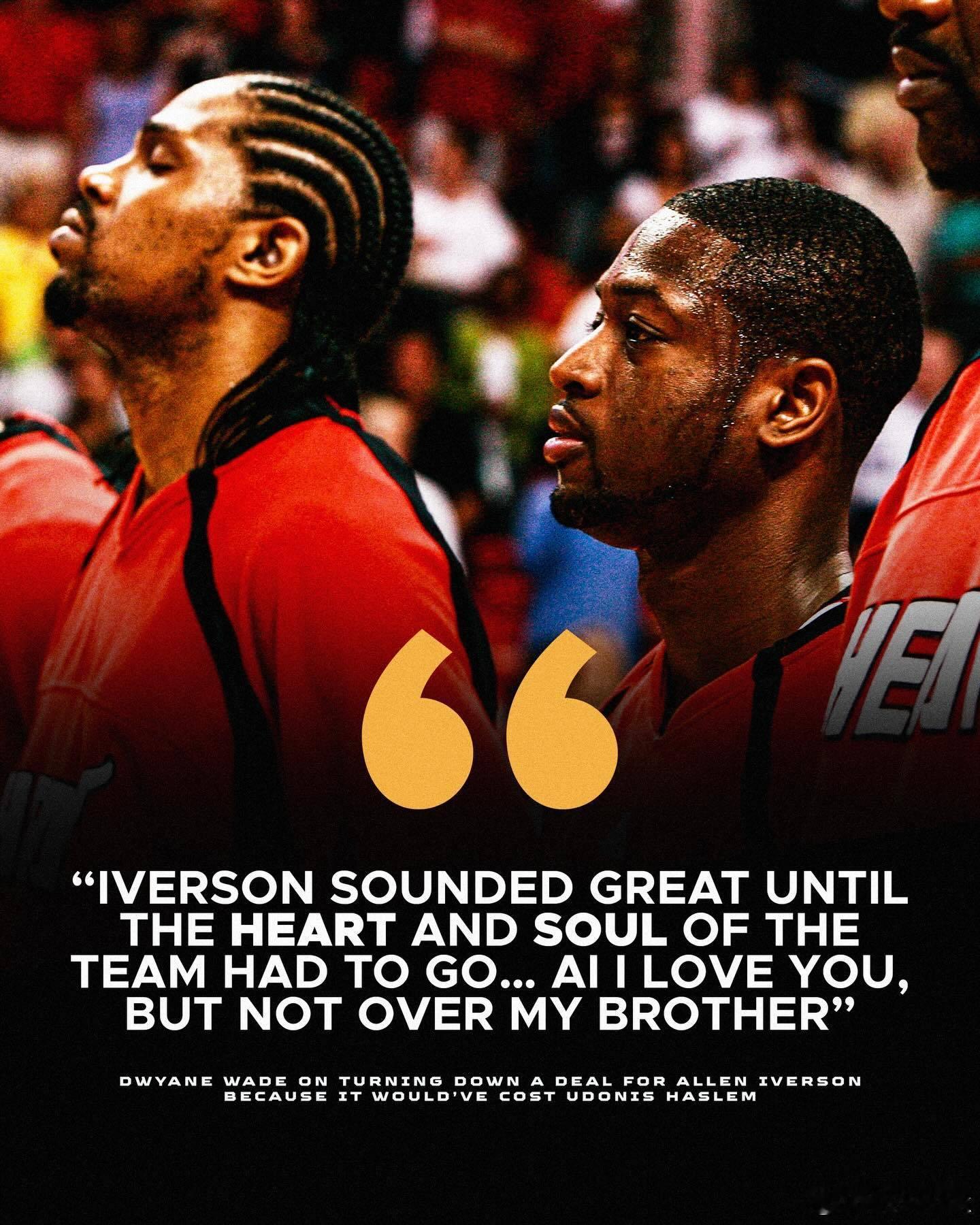韦德和哈斯勒姆谈到了2006年热火可能交易来艾弗森的事情。韦德透露,在2006年