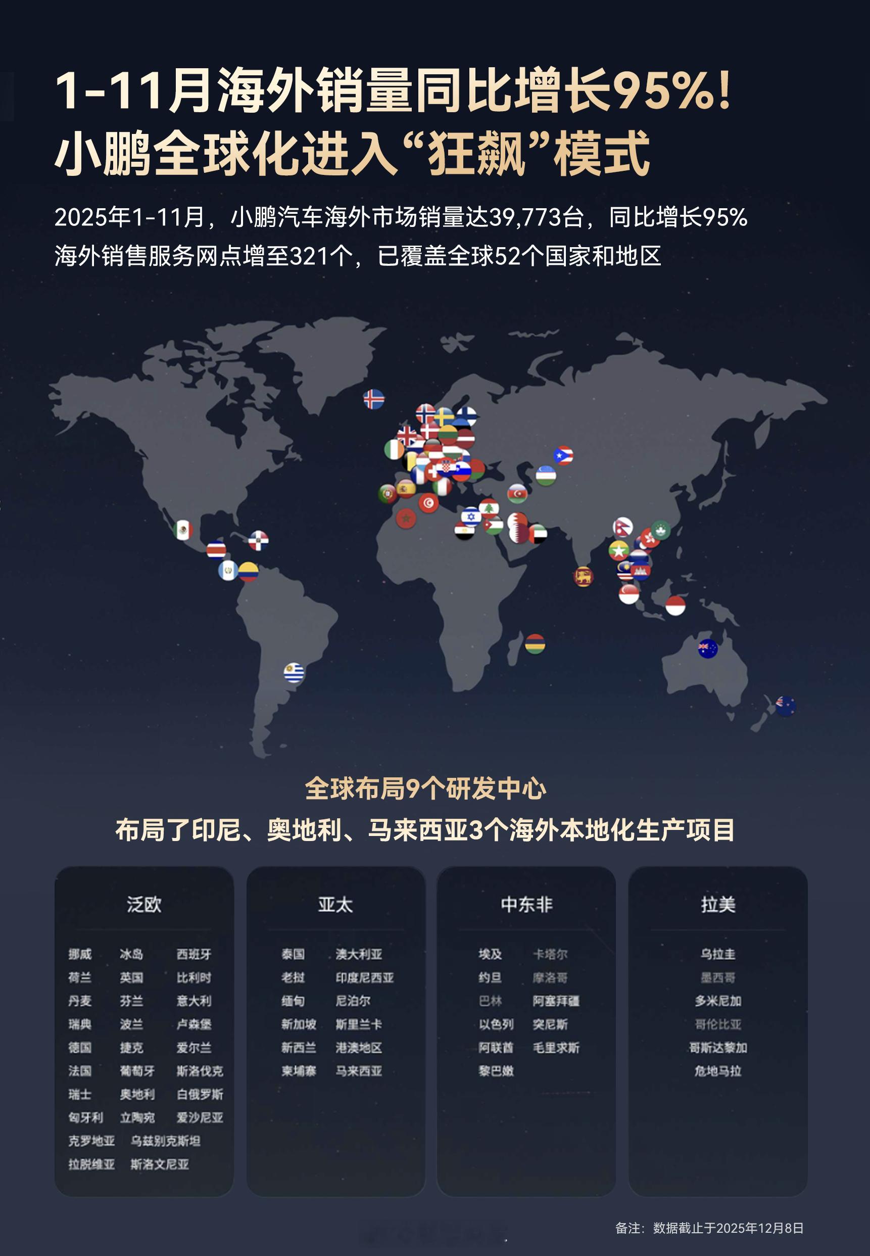 小鹏官宣和马来西亚EPMB集团合作,启动第三个海外本地化生产项目,继印尼、奥地利之后,把制造版图又拓宽了一步。这个项目2026年就能量产,专门瞄准东盟右舵车市场。其实小鹏在马来西亚早就火了,今年1-10月冲进纯电销量前六,X9还拿下马来西亚高端电动MPV销量冠军。从产品出海到本地生产,这下东南亚车友能更快提车,享受更贴心的服务啦。小鹏官宣开启马来西亚本地化生产小鹏第三个海外生产项目将落地