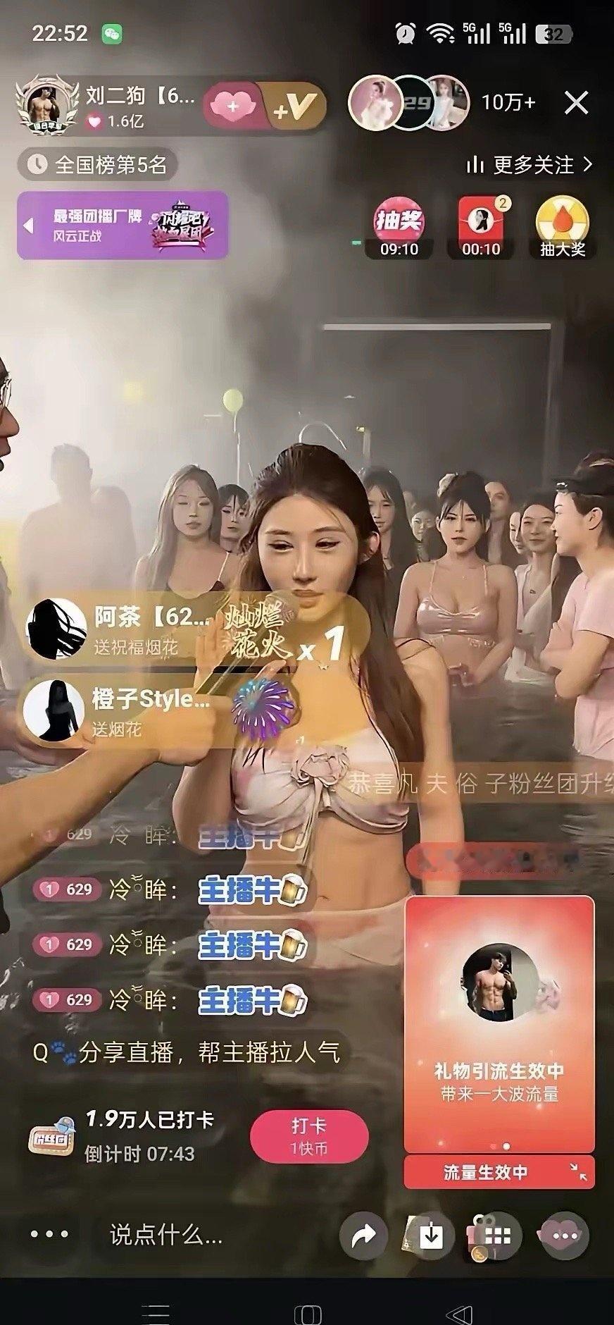 厉害啊,还得是4000多万粉丝的大网红,这操作实在是没谁了, 这种直播都能够想出来,这完全就是在往枪口上撞啊,刘二狗的直播主题,“泳池派对”真吸引人,各大主播都身穿泳衣在泳池中玩耍。 但是吧,你认为平台不会出手吗?热搜算是上去了,但是账号直接是被处罚了,目前来看已经是处于被禁言的状态, 虽然说是提前报备过了,但是奈何粉丝们不给力啊,整个直播时间,这举报就没有停下,直到上了热搜,平台才选择进行封禁,给出了一个禁言的惩罚。 有些时候,这直播还是偏正能量一点吧,不是所有人都喜欢这种直播。
