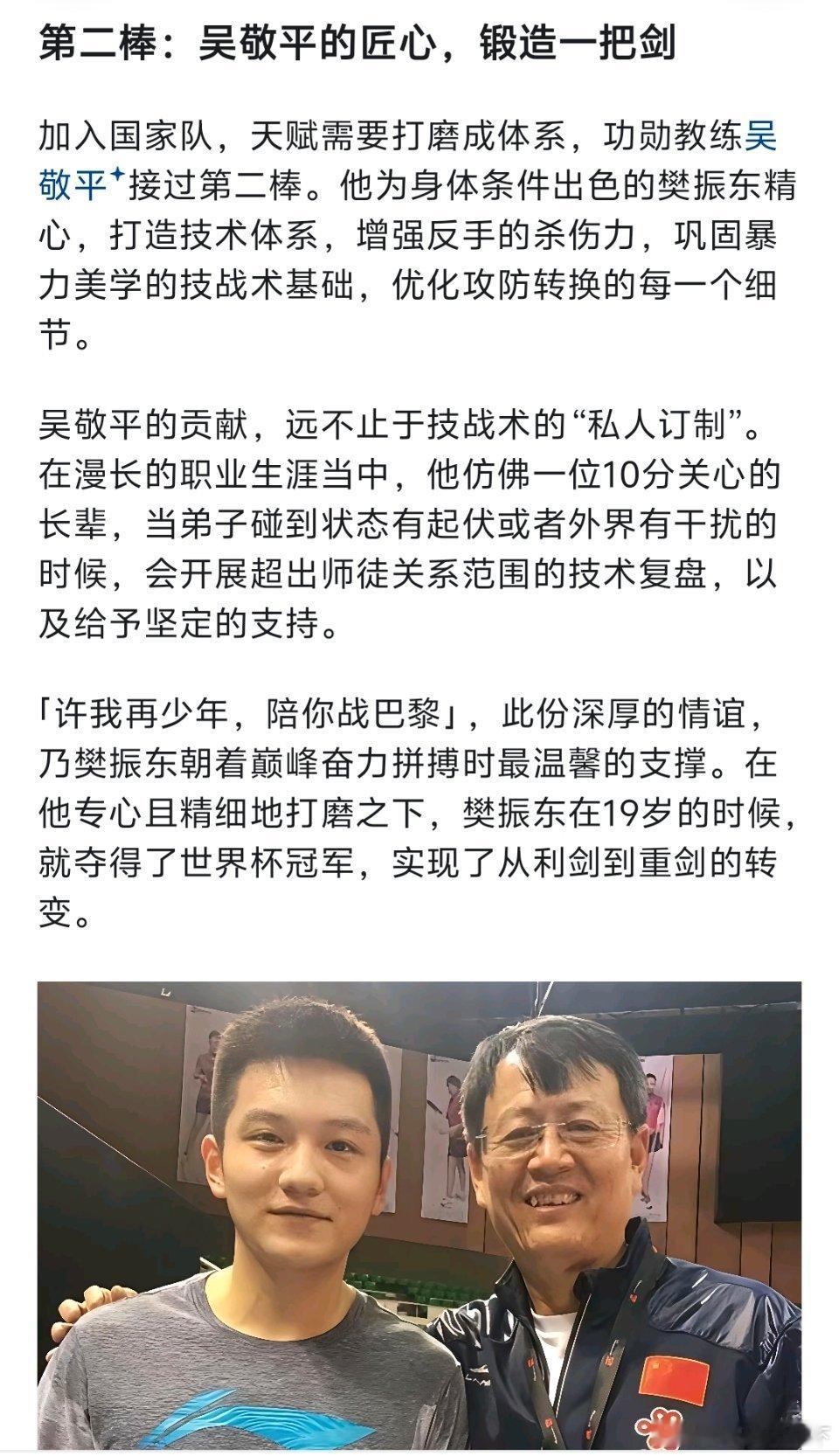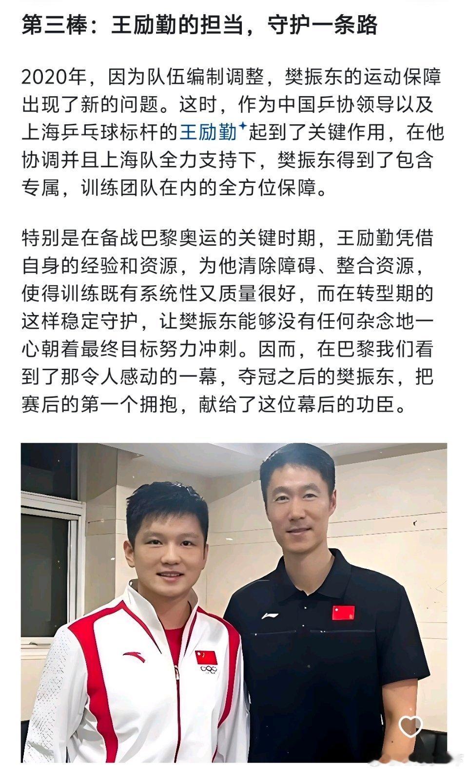 樊振东传奇之路上的三位关键先生的相助,从王涛的胆量到吴敬平的用心再到王励勤的担当。