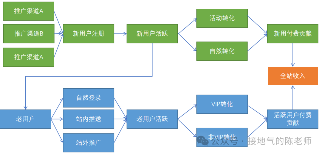 用户运营中,一般会将:拉新数量,活跃用户数量,转化率,VIP新增数量等作为主要考核指标。用户运营是最复杂的场景,因为和广告投放、宣传内容、促销活动等多个因素有关系,最容易各种纠缠不清。