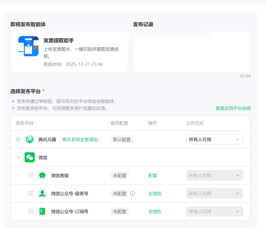 腾讯元器支持多种发布渠道,满足不同使用场景: