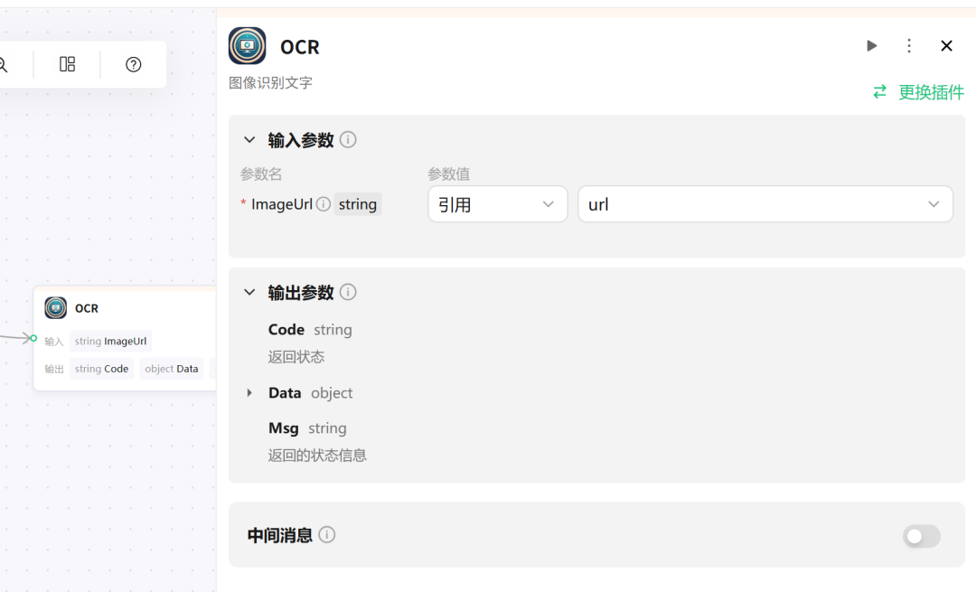 节点类型:选择”OCR插件”节点