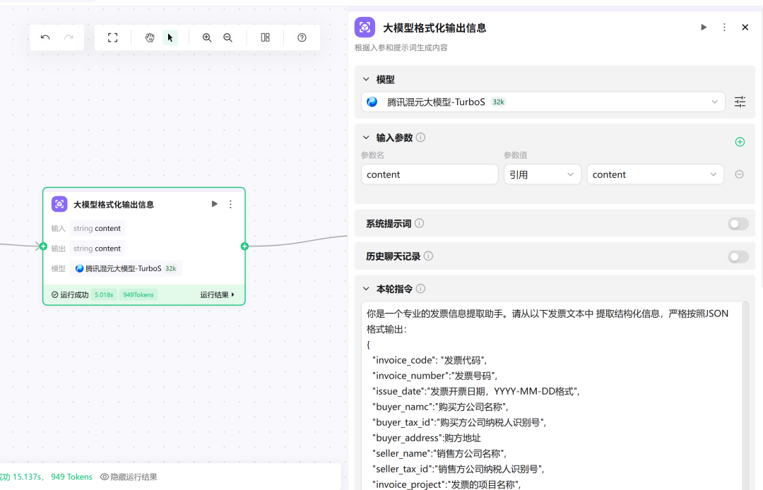 信息提取节点:使用大模型提取结构化字段