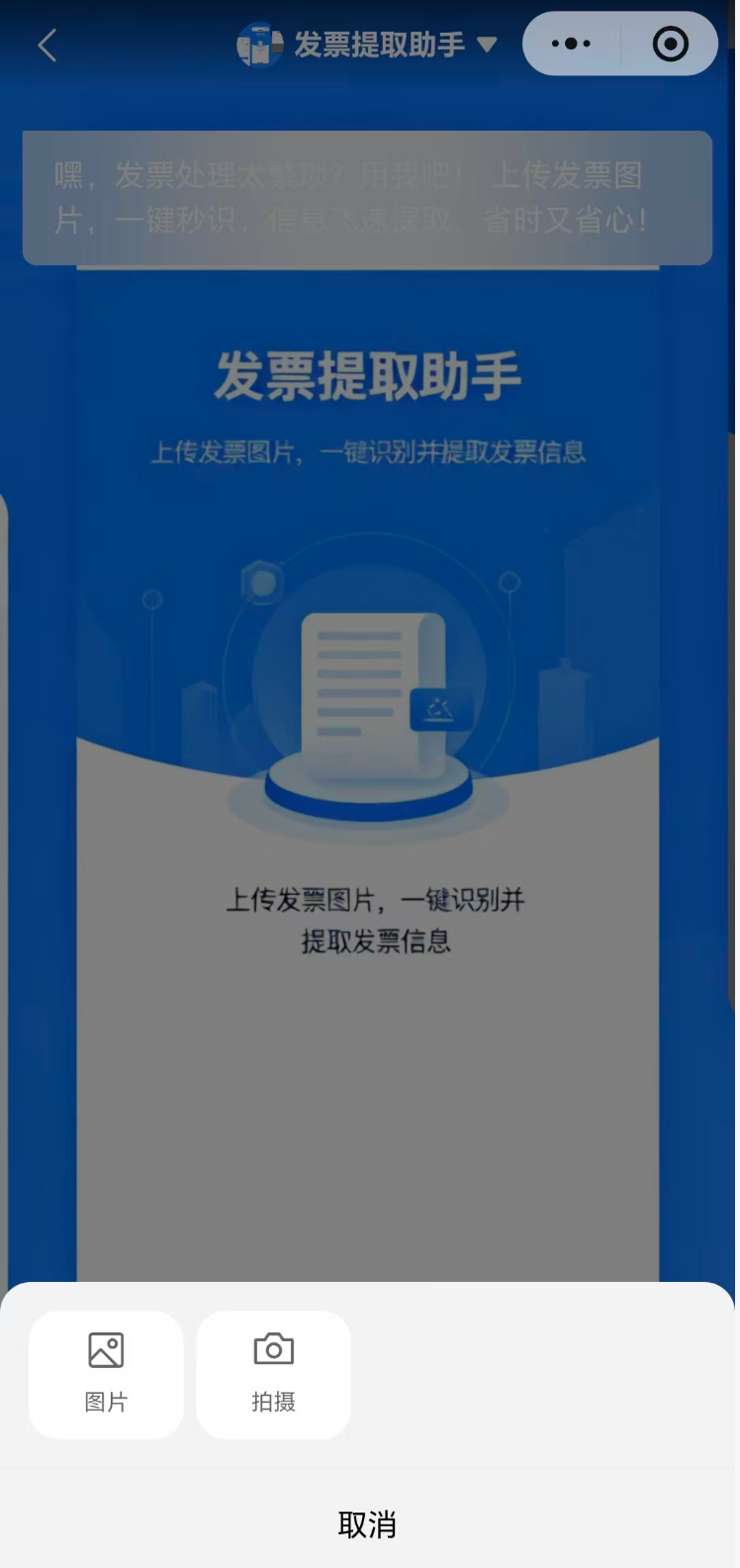 移动办公:财务人员在外收到发票,直接用微信拍照上传,立即提取信息
