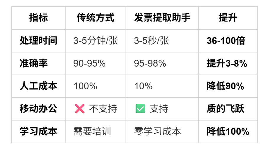 智能体方式:自动提取仅需3-5秒,准确率可达95%以上,支持移动办公,零学习成本。