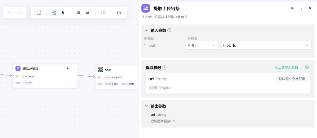 上传文件的URL获取,需要通过参数提取节点先做处理(如上图中的节点2)