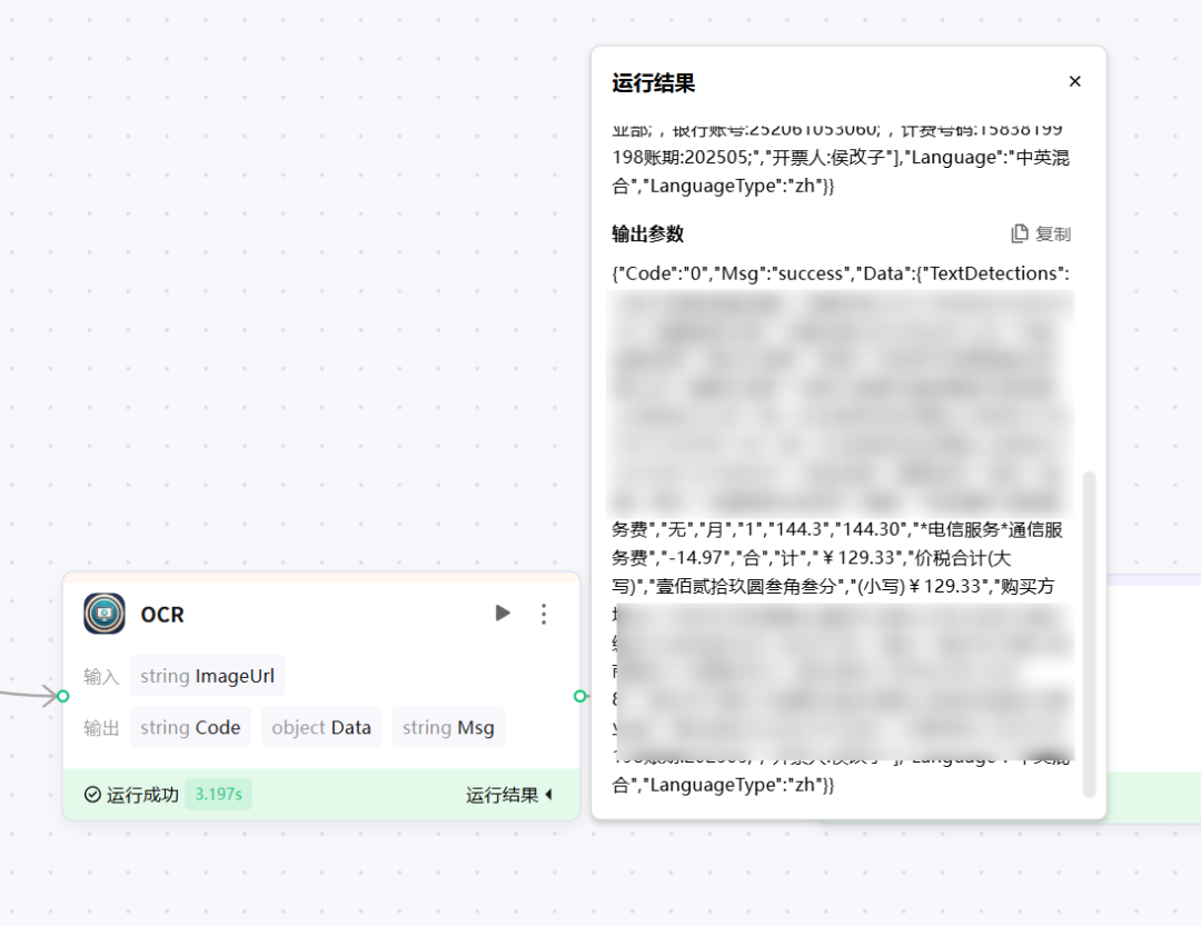 OCR识别节点:识别发票图片中的文字