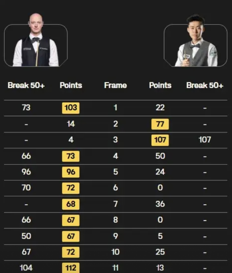 虽然2:9的比分看起来很悬殊,实则韦克林至少3次以上打丢了超分球,还有不少简单失