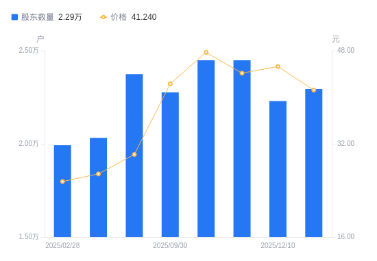 日期A股户数(户)流通A股户均持股数(股)户均持股市值(万元)2025-11-30244865800.1825.602025-10-31244865800.1827.672025-09-30227676238.1226.402025-06-30237405981.9718.052025-03-31203186989.4718.762025-02-28199227128.4018.202024-12-31188177547.0118.182024-09-30185797643.6819.412024-06-30165178597.9320.452024-03-31194187313.4219.15